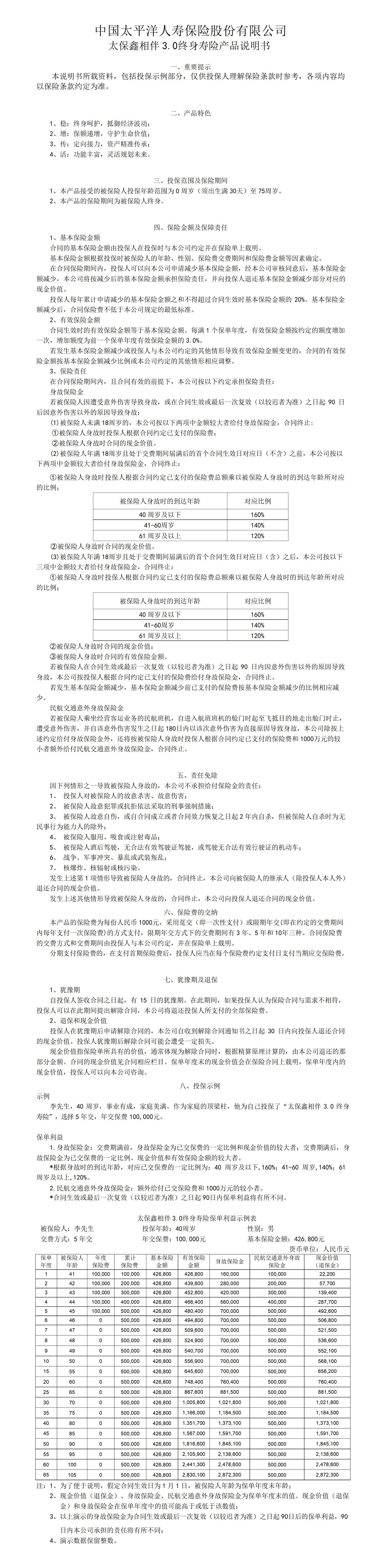 太保鑫相伴3.0終身壽險(xiǎn)