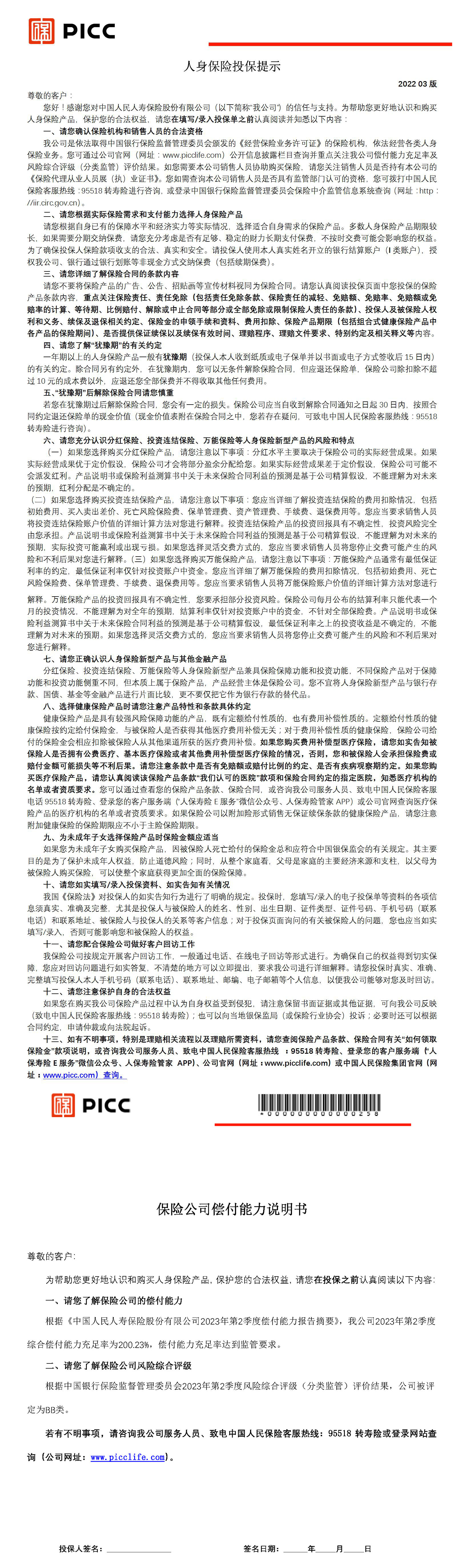 中國人民人壽保險(xiǎn)公司合作信息披露